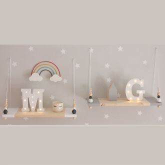 Χειροποίητο ραφάκι από ξύλο πεύκου, βαμμένο στα πλαινά σε χρώμα γκρι. Κρεμιέται από κορδόνι και στηρίζεται στον τοίχο με καρφάκι ή γωνία. Οι ξύλινες χάντρες είναι από ξύλο οξυάς σε φυσικό χρώμα και οι βαμμένες σε χρώματα μέντα και λευκό. Eνα υπέροχο διακοσμητικό για αγοράκια και κοριτσάκια! Το ραφάκι είναι από ξύλο πεύκου, χειροποίητο και βαμμένο με χρώματα οικολογικά κατάλληλα για παιδικά δωμάτια.