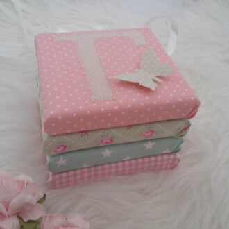 Η πιο ιδιαίτερη ιδέα για το όνομα του μωρού στο βρεφικό δωμάτιο! Καμβαδάκι 10×10εκ, με το κάθε γράμμα ξεχωριστά κεντημένο απλικέ σε αποχρώσεις του ροζ.Σε περίπτωση που θέλετε διαφορετικά χρώματα/υφάσματα επικοινωνήστε μαζί μας για να φτιάξετε τον δικό σας μοναδικό συνδιασμό! Οι υφες, τα υφάσματα και τα χρώματα που μπορείτε να χρησιμοποιήσετε, άπειρα! Κάθε καμβαδάκι κρεμιέται με σατέν κορδελάκι και τα υφάσματα που χρησιμοποιούμε είναι βαμβακερά.