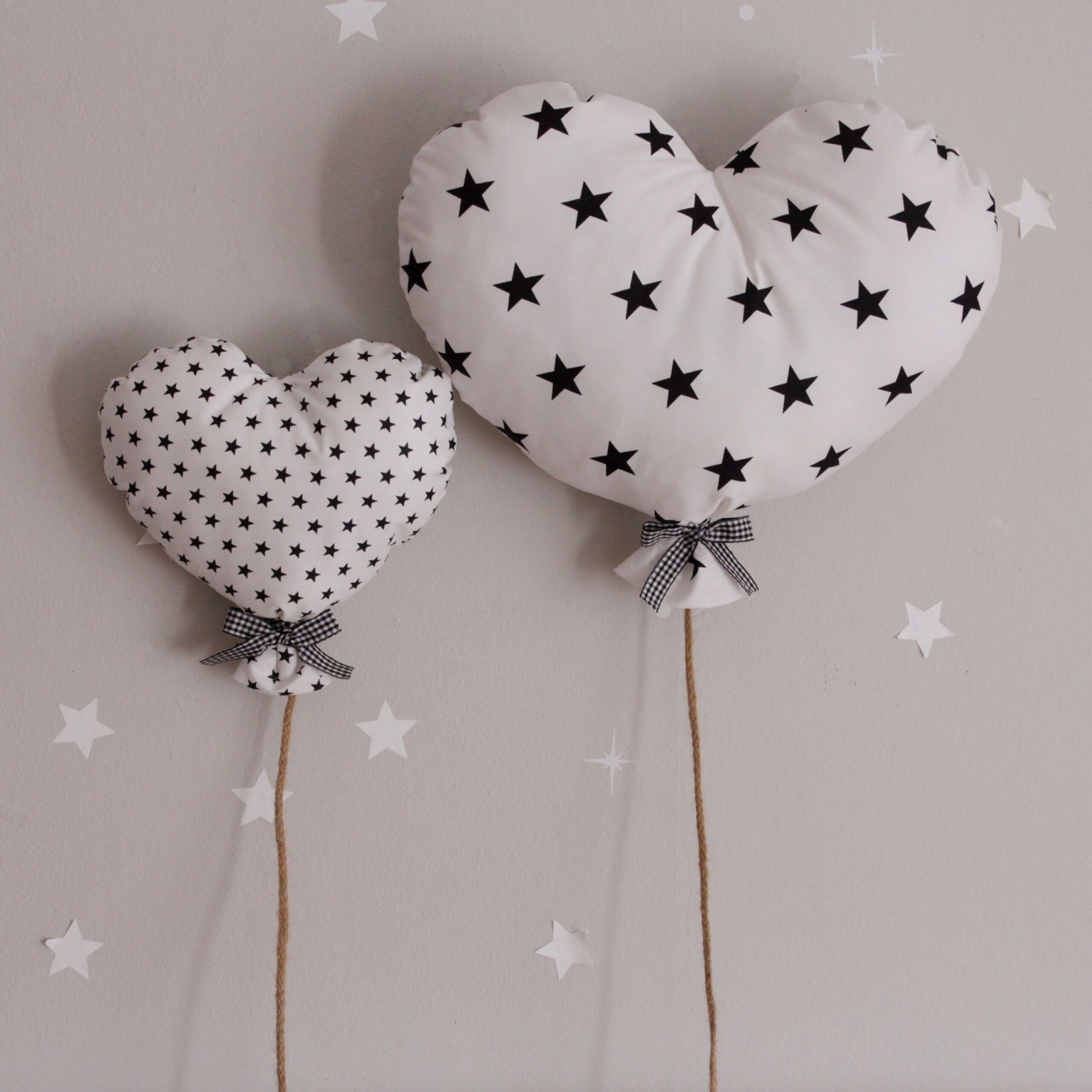 Είναι μαλακά , απαλά και παραμυθένια! Υφασμάτινα μπαλόνια σε σχέδιο καρδούλα με υποαλλεργική γέμιση που κρέμονται στον τοίχο σε 2 διαφορετικά μεγέθη.