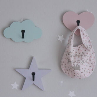 Κρεμάστρα τοίχου σε σχέδιο συννεφάκι σε λευκό χρώμα με δύο αστεράκια σε αποχρώσεις του γκρι. Είναι από mdf και έχει 4 κρεμασταράκια. Συνδιάστε το με ένα ραφάκι σε σχέδιο φεγγάρι και κάντε τον δικό σας μοναδικό συνδυασμό!