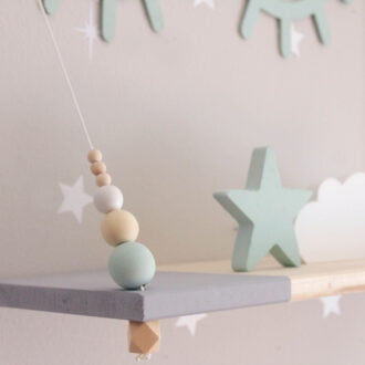 Συνδυάζεται όμορφα με τα ξύλινα αυτοστηριζόμενα διακοσμητικά ή και ένα ραφάκι αστέρι. Το ραφάκι είναι από mdf, χειροποίητο και βαμμένο με χρώματα οικολογικά κατάλληλα για παιδικά δωμάτια. Στο πίσω μέρος υπάρχουν εξαρτήματα έτοιμο προς τοποθέτηση.