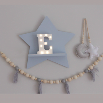 Συνδυάζεται όμορφα με τα ξύλινα αυτοστηριζόμενα διακοσμητικά ή και ένα ραφάκι αστέρι. Το ραφάκι είναι από mdf, χειροποίητο και βαμμένο με χρώματα οικολογικά κατάλληλα για παιδικά δωμάτια. Στο πίσω μέρος υπάρχουν εξαρτήματα έτοιμο προς τοποθέτηση.